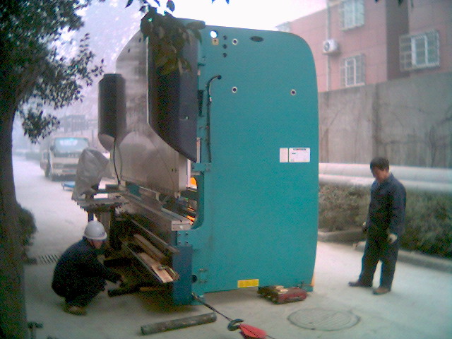 石家莊開發(fā)區(qū)區(qū)的一工廠搬遷做設(shè)備搬運,從舊廠搬到新廠,搬家工作人員正在對設(shè)備進(jìn)行裝卸
